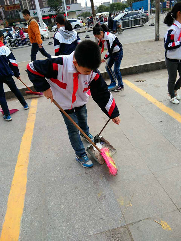 3月6日下午班会课时,在年级组组长熊梅老师的带领下,组织了部分少先队员开展了爱护环境义务劳动。对学校周边的卫生进行全面的打扫,同学们没有畏惧这些脏乱的角落,个个发挥不怕苦、不怕累的精神,分工协作,经过近一小时的劳动,校园周边环境焕然一新。虽然同学们都累得汗流浃背,但看到自己的辛勤劳动换来了干净整洁的环境,大家都会心的相视而笑。