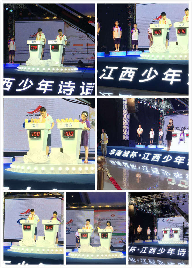 “弘扬诗词文化,感受江西魅力”是由江西网络广播电视台、江西省诗词学会、南昌华南城共同举办的华南城杯·2018江西少年诗词大会(第二季)的主题。本次大会题库丰富且具有独特性,由近百名语文教学工作者和诗词专家选取近5000首诗词,且与江西地域、人文相关,并融入了部分近代诗词作品。参赛单位是南昌市14所知名学校,师大、南大、交大附小,育新、向荣、邮政路学校,还有我们南昌现代外国语象湖等14所学校。我校采取分班级、年级竟选的方式推荐选手,经过前期激烈角逐,最终十位同学过关斩将,被选为参赛选手。这十位同学分别是:六(1)班的杨洲、徐慧、刘加,六(2)班的钟昊、李子璇、付子欣,六(4)班的蒋博文、朱乐群,六(5)班的刘晨、章浩。