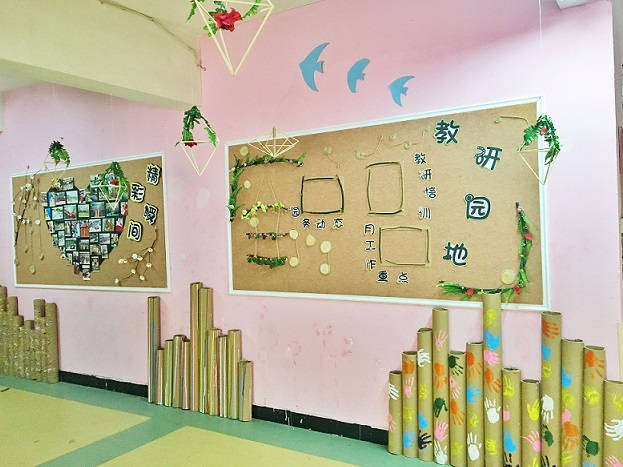 随后,各班教师根据幼儿年龄特点、教学主题内容,结合有限的空间,大胆构思、精心创设,利用丰富多样的材料,创设出了各具特色的室内环境、形式各异的主题墙、温馨的家园互动栏及幼儿感兴趣的特色功能室和彰显韵味的走廊文化等。