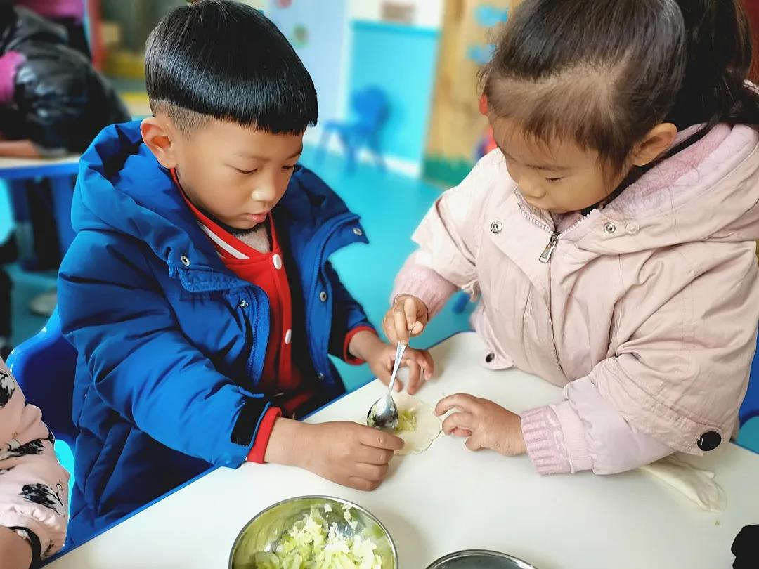 今天,在老师们的精心准备下孩子们认真的学习包饺子,有的用橡皮泥包出五颜六色创意十足的饺子,有的则真枪实弹包美味的饺子。虽然孩子们包的有些不美观,但是吃着自己制作的饺子格外的香甜。通过包饺子环节,也让孩子们懂得了食物制作的过程,参与食物制作,让孩子明白可以做的事情有很多,要做一个有担当的小朋友。