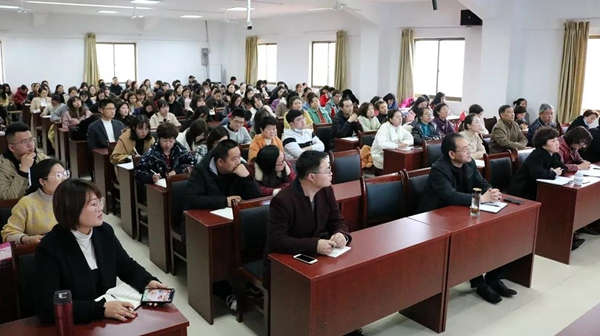 新学期开启新征程,新目标引领新方向。开学在即,为了更好地提升我校教师的专业素养和实践能力,造就一支基础扎实、业务精良、卓越创新的师资队伍,2月25日下午,南昌现代外国语象湖学校邀请了南昌市教育教学资深专家周美华校长为全体教师开展了题为《树立课标意识——围绕‘三维目标’落实核心素养》的专题讲座。此次会议由校长王礼琴主持。