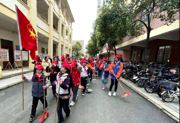 会后,党支部书记张水秀协同团支部书记周豪、大队辅导员谢珊珊一行50余名志愿者,走出校门,来到临街路面、人行通道,进行了全面认真地清理打扫。志愿者队伍里既有党员、团员,还有我们的少先队员,他们扛着扫把,拿着撮箕、钳子、铲子等工具,发扬不怕脏、不怕累的作风,把路边的垃圾全部清扫干净。经过大家的共同努力,道路两旁焕然一新,营造了干净整洁的环境。