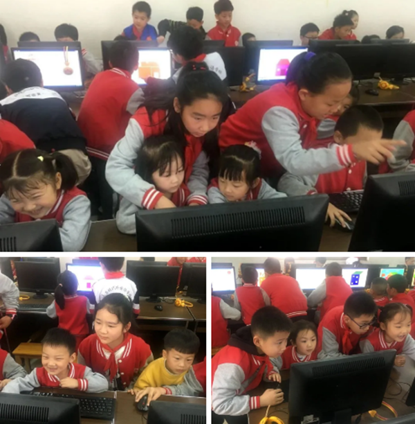 趣味识字、找规律指图形、Follow me(跟我做)……我校小学部老师们精心准备了一堂别样的课堂。在微机室,我校精心制作了“美丽校园的PPT”,并安排哥哥姐姐贴心解说并指导孩子们填充颜色,孩子们兴趣盎然,依依不舍地离开了微机室。