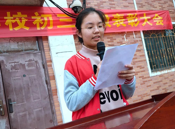 王礼琴校长现场随机诵读了各班主任为学生写的的加油卡,并勉励同学以咬定青山之志,以饱满的精神,激昂的斗志,以强烈的亮剑精神,带着拼杀的渴望,以时不我待,只争朝夕的锐气迎接中考。