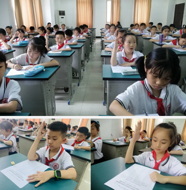 比赛现场,由教师读出四字词语,学生将听到的词语写在答题纸上。赛场上,小选手们个个表现不凡,看着他们比赛时专注的神情,瞧着他们端正隽秀的字迹,可以看出他们个个都进行了全面的赛前准备。比赛期间,同学们严格遵守纪律,都能做到安静专注地听,认真快速地答,工整规范地书写,细致入微地检查。