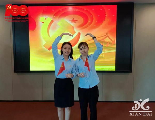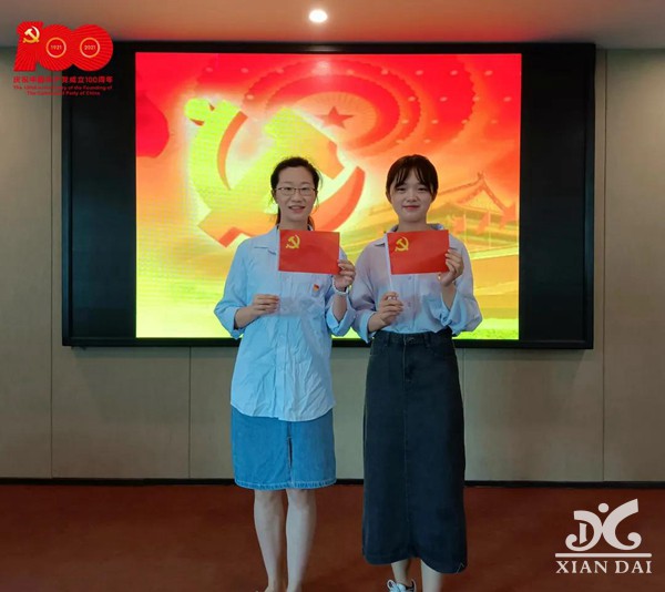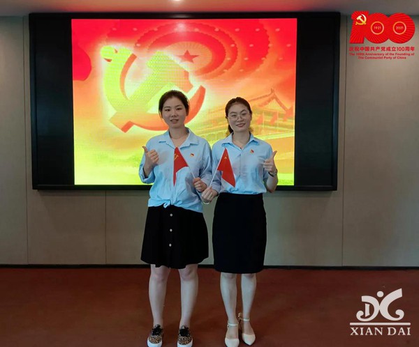 我是南昌现代外国语学校教师倪雨红(左),我的党龄1年,在建党100周年之际,我想对党说:“中华民族走过风雨,华夏儿女历经磨难,创先争优打开新篇,建党一百喜庆连天,科学发展一路,富强祖国迈向明天。”