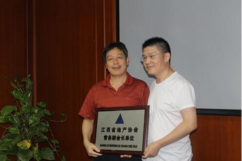 江西省地产协会会长章新明向董事长胡乐平授牌