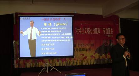 为进一步增进家校之间的联系,促进学校与家庭、教师与家长的交流沟通,更好的形成家校教育的合力,12月17日下午,南昌现代外国语学校举办了“智慧父母,成长导航”家庭亲子教育服务公益活动,著名“亲子教育专家、中国亲子英语第一人”陈林老师为家长做了精彩报告,学校会议报告厅座无虚席,除我校学生家长外,其他外校学生家长近200余名慕名前来听取了报告。
