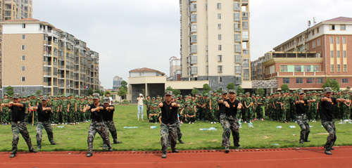 闭营式上,近500名新生进行了精彩的队列汇报表演,带队教官集体表演了军体拳、战术基础等动作,赢得了全体师生的热烈掌声。