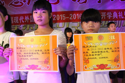 9月10日上午,南昌现代外国语学校(迎宾校区)2015年开学典礼暨教师节表彰大会在学校五楼会议厅隆重举行。校长刘雁华,初中部校长邓华,小学部校长傅绍玫等校领导及各班班主任和3000多名学生参加典礼。