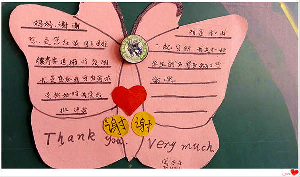 一张张小贺卡凝聚着同学们的浓浓爱意,有感谢父母养育之恩的,有感谢老师教导之情的,还有感谢帮助过自己的小伙伴的……