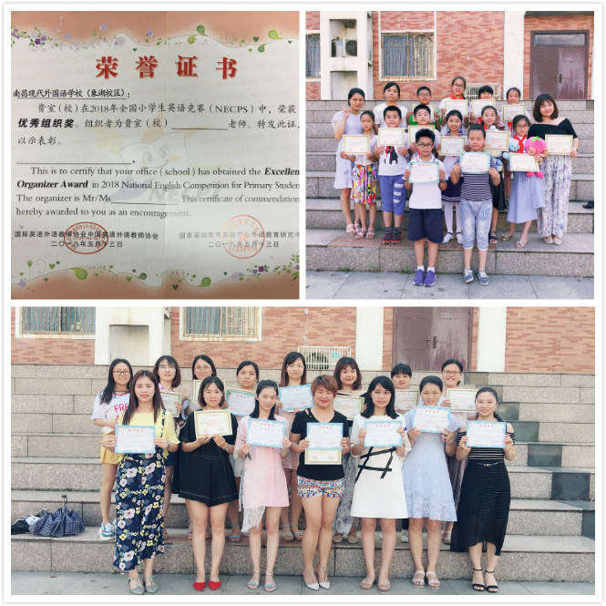 本次竞赛,南昌现代外国语象湖学校经过初赛选拔,共69名学生进入决赛。从初赛到决赛短短一个月的时间,由英语教研组长负责组织有针对性地进行辅导,老师之间经常在一起相互交流辅导方法,商讨难题,并做到每天跟家长沟通与交流,让家长配合督促孩子在家完成复习任务。功夫不负有心人,在决赛中,有九名学生获得了国家级奖;有18名学生获得市级一等奖;35名学生获得市级二等奖;8名教师获得“全国优秀指导教师”光荣称号;学校荣获全国小学生英语竞赛(NECPS)优秀组织奖。本次比赛获得优异成绩,是对参赛学生刻苦学习的肯定,是辅导老师辛勤指导的回报。