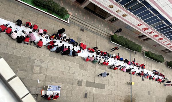 12月8日下午,南昌现代外国语学校校园内人头攒动、热闹非凡,一场别开生面的“喜迎2021”百米长卷现场绘画比赛正在举行。此次活动由小学部主办,以迎新年为主题,一至六年级共计百余名师生参加。