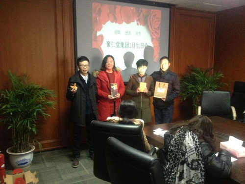 紧接着,品牌文化部副总监赵桦代表寿星们做了一个简短的发言,她指出,集团为员工举办生日会表现了集团领导对员工的关爱,因此我们需对集团心存感恩之心,今后我们也要更加努力的工作以回报集团和领导们的亲切关怀。