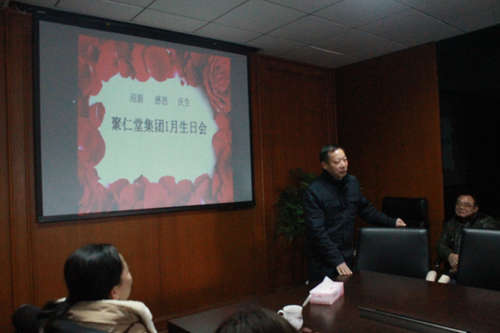 为加强集团文化建设和人文关怀,营造团结友爱、和谐温馨的聚仁堂大家庭氛围,1月30日上午9点40分,聚仁堂集团首届员工生日会在聚仁堂集团总部会议室举行。集团副总裁陆洋、董事长助理熊绍文、行政人力资源部总监詹攀攀、工程总监邹国保、物业管理部总监华志雄、品牌文化部副总监赵桦等领导出席本次生日会。