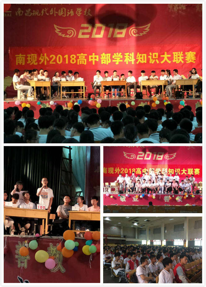 2018年6月13日下午4:30,南昌现代外国语学校五楼演播大厅,掌声阵阵,热情激昂,高中部正在举行学科知识大联赛。